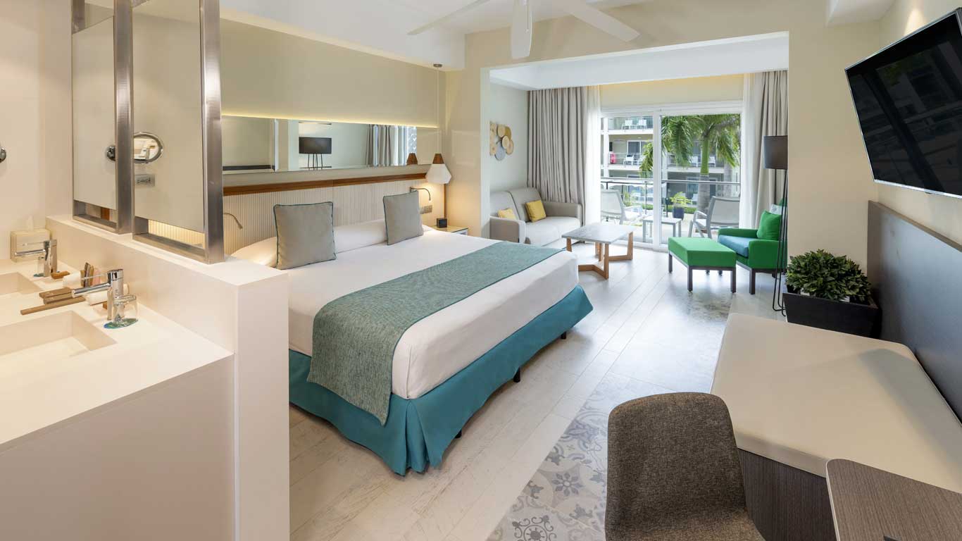 The Superior Rooms at Catalonia Royal La Romana are comfortable and modern room has a king size bed and a furnished balcony. It shows an ideal contrast between tropical style, elegance and comfort.